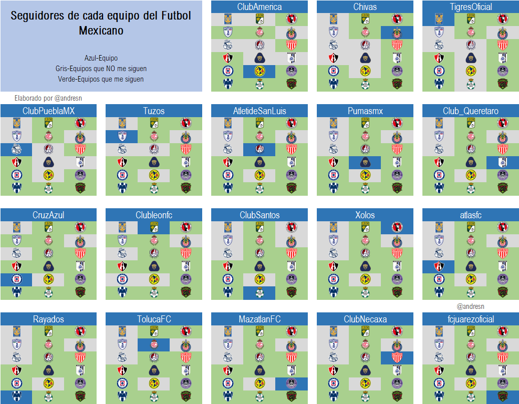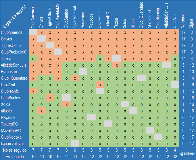 La matriz completa de quien sigue a quien en el twitter de los clubes del Futbol Mexicano
