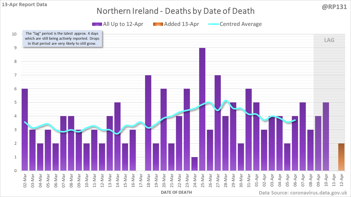 651 new #covid19uk deaths reported today (13-Apr). This brings the rolling average by date of death (allowing 4 days for lag) to 244, an increase of 10 (4.2%) in the last week.