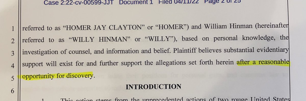 I need to make clear that I had nothing to do with filing the Arizona class action 🆚 Clayton and Hinman. People have asked be about pursuing them and the SEC for damages. I’ve maintained that you cannot rush a case where there are issues of sovereign and qualified immunity.