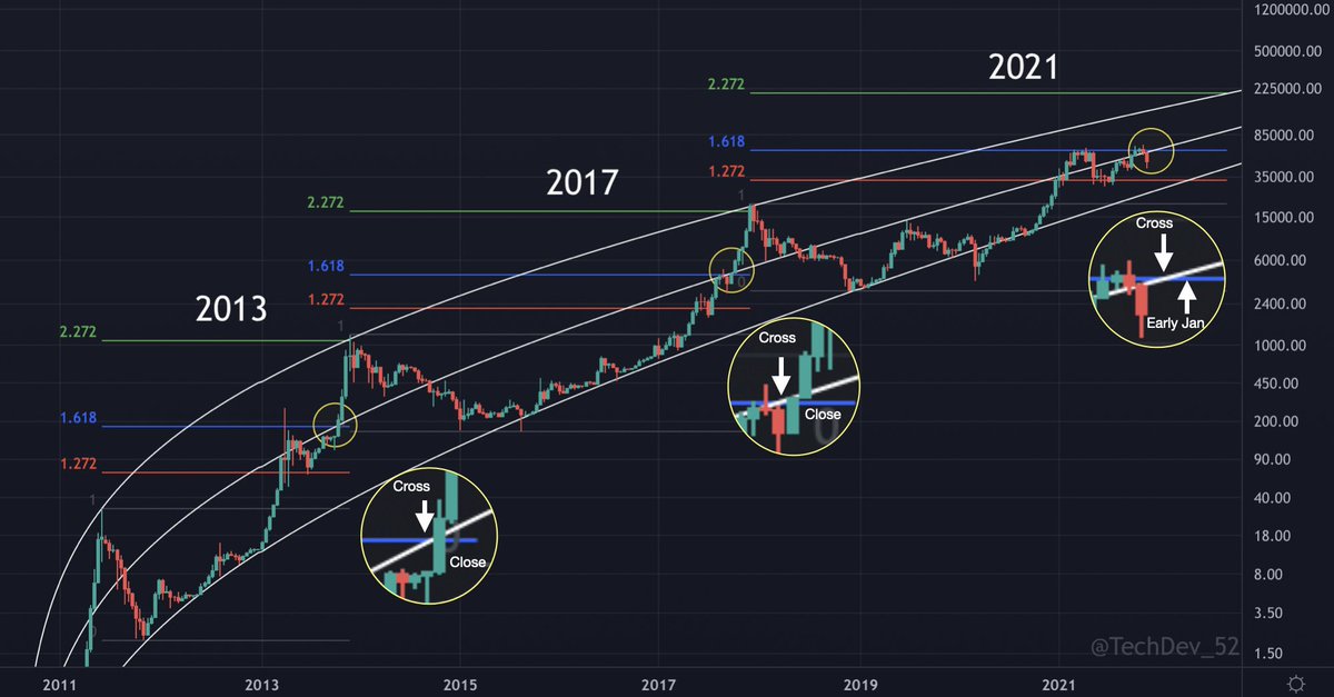 And yes, a historic example of similar multi-year macro wave structure in a speculative asset with consistent interaction with a key MA, the next projected move of which is confluent with the upcoming impulse suggested by points 1-7.