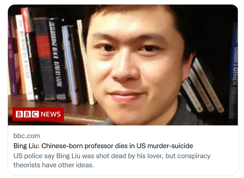 "Bing Liu, assistant professor @ the University of Pittsburgh School of Medicine, was found dead in his house ..