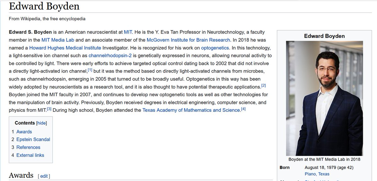 👆Edward Boyden was one of several scientists at the MIT Media Lab who met with Jeffrey Epstein to seek financial support.. He lso visited Epstein's personal residence on multiple occasions