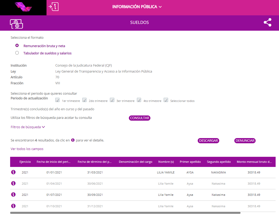 🔹Lilia Yamile Aysa Nakasima, media hermana de Carlos Miguel Aysa Damas, diputado del Grupo Parlamentario del PRI, ocupa un cargo como Oficial Judicial C, en el Consejo de la Judicatura Federal (CJF), percibiendo un sueldo bruto mensual de $30,318.49