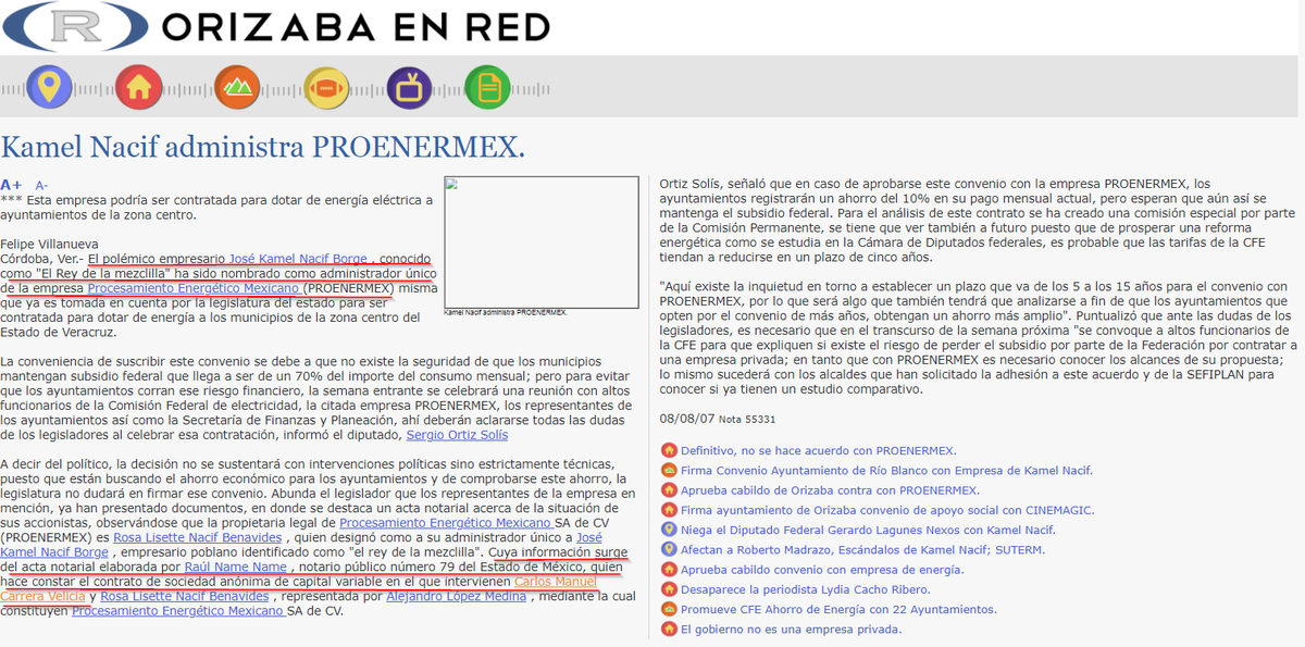 🔹Dato. Carlos Manuel Carrera Velicia, Presidente y Director de la empresa Troy T&D, S.A. de C.V, fungió como vocal de PROENERMEX, cuyo administrador fue José Kamel Nacif Borge, empresario poblano identificado como "el rey de la mezclilla.