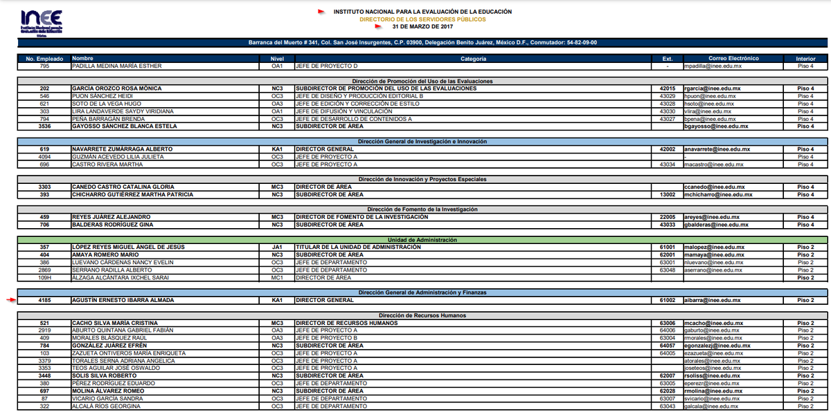 🔹Agustín Ernesto Ibarra Almada, hermano del cineasta Epigmenio Ibarra Almada, fue Dir. Gral. de Administración y Finanzas (2017), en el Instituto para la Evaluación de la Educación (INEE), durante la administración del ex presidente Enrique Peña Nieto.