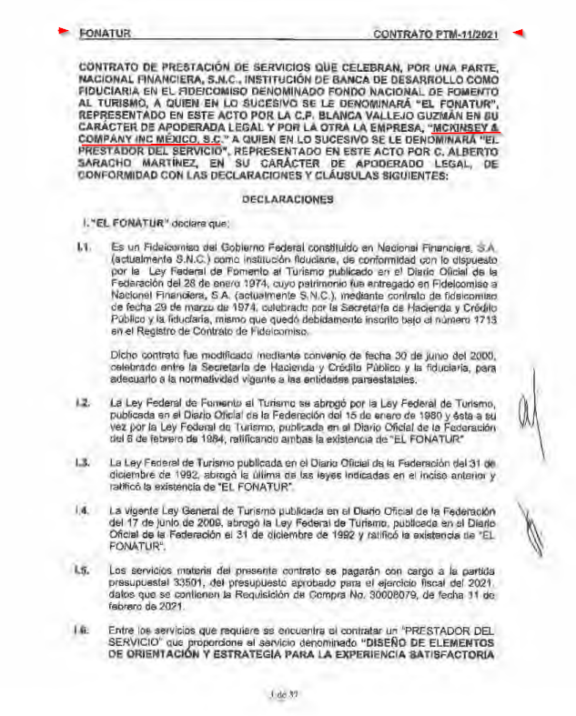 🔹Fonatur dio contrato por $ 24, 934,326.00 a Mckinsey & Company Inc México S.C., cuya socia es Sofía Valentina Ibarra Rodríguez, sobrina del cineasta Epigmenio Ibarra, para “realizar el diseño de elementos de orientación de las estaciones y paraderos Tren Maya”.