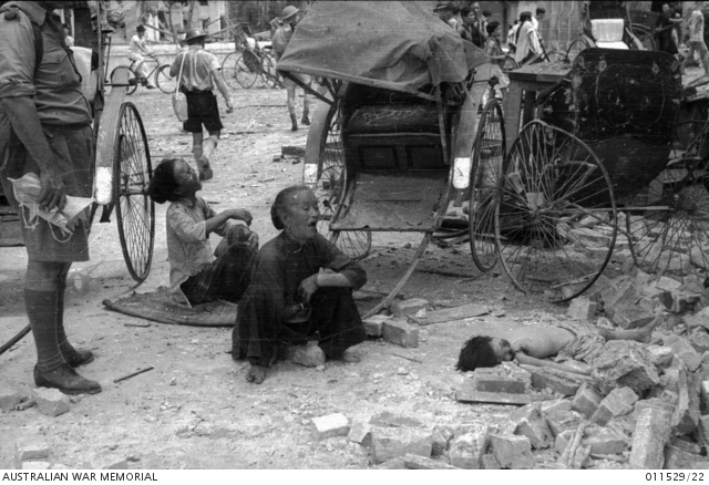 Couldn’t sleep with the British shells whistling over the estate. And early in the morning the Jap planes came over, and everybody ran helter skelter for shelter.
