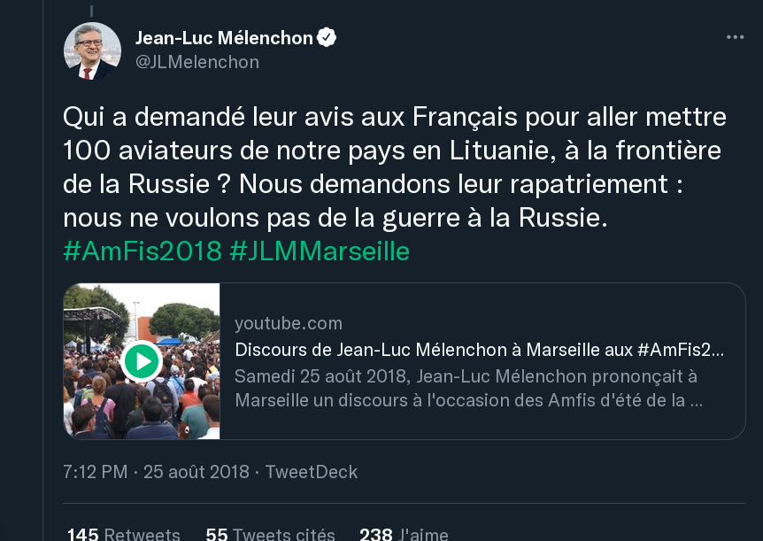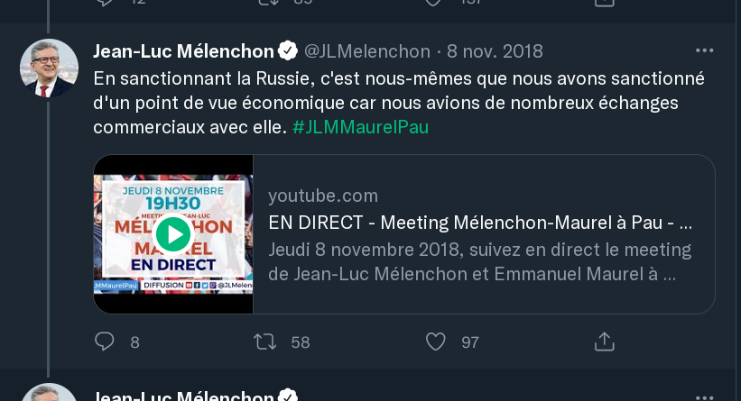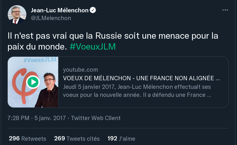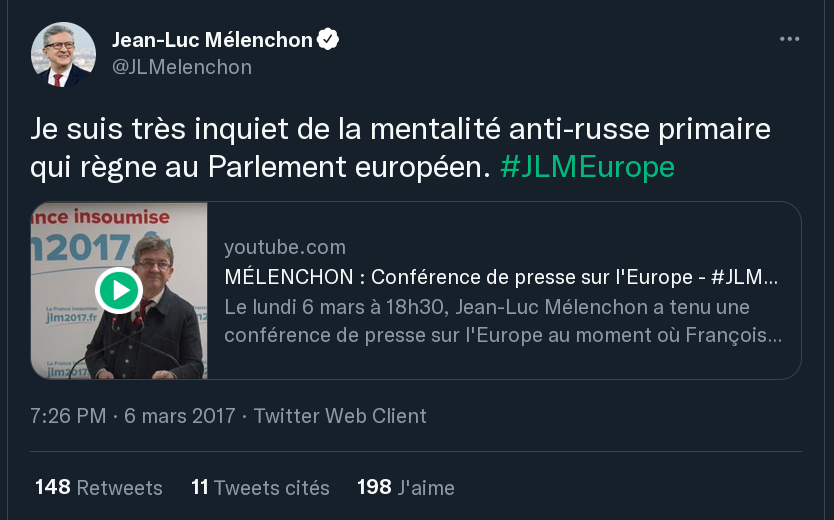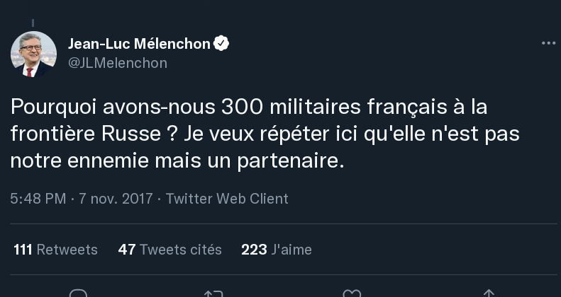 Mais alors comment s'informait-il ? Parce que JLM a ÉNORMÉMENT écrit et parlé au sujet de la Russie, depuis des années. Cherchez sur les RS, sur son blog, dans les archives des médias.