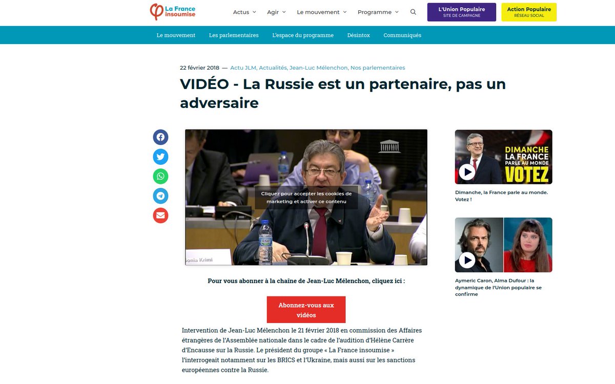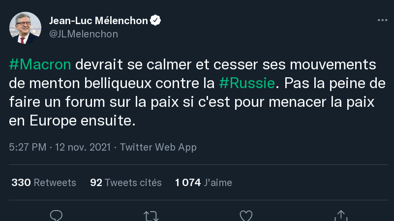 Avant que le monde soit horrifié par l'entrée des troupes russes en Ukraine, Mélenchon ne savait pas QUI était son ami russe ?