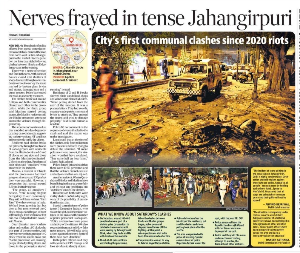 Thread #Delhi As communal clashes broke out in Jahangirpuri on Sat evening, this mosque in C-Block was at the middle.