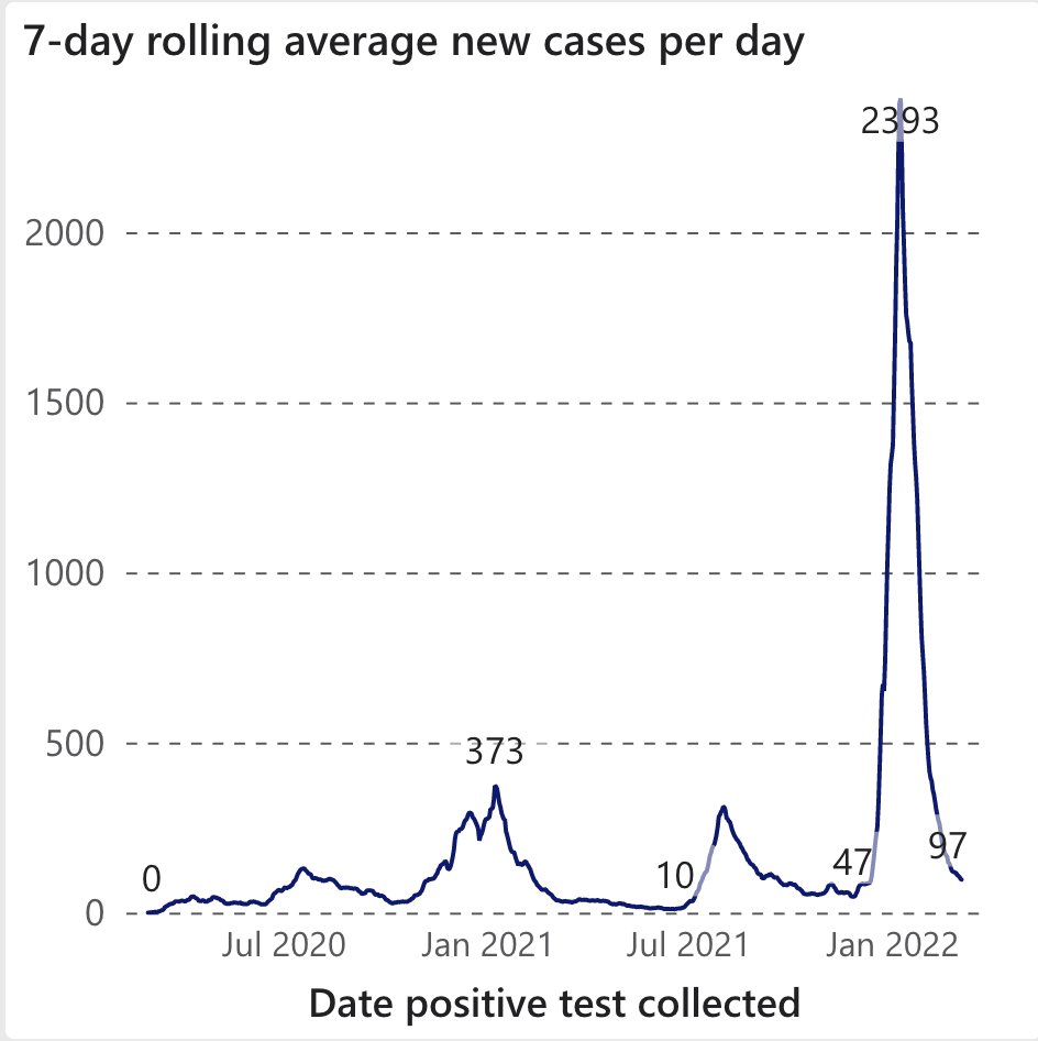 ...describe why this number hasn't budged, although the inputs into that threshold have changed quite a bit with Omicron. To me, the forces cancel each other out, landing me where I began: 10/100K/day.