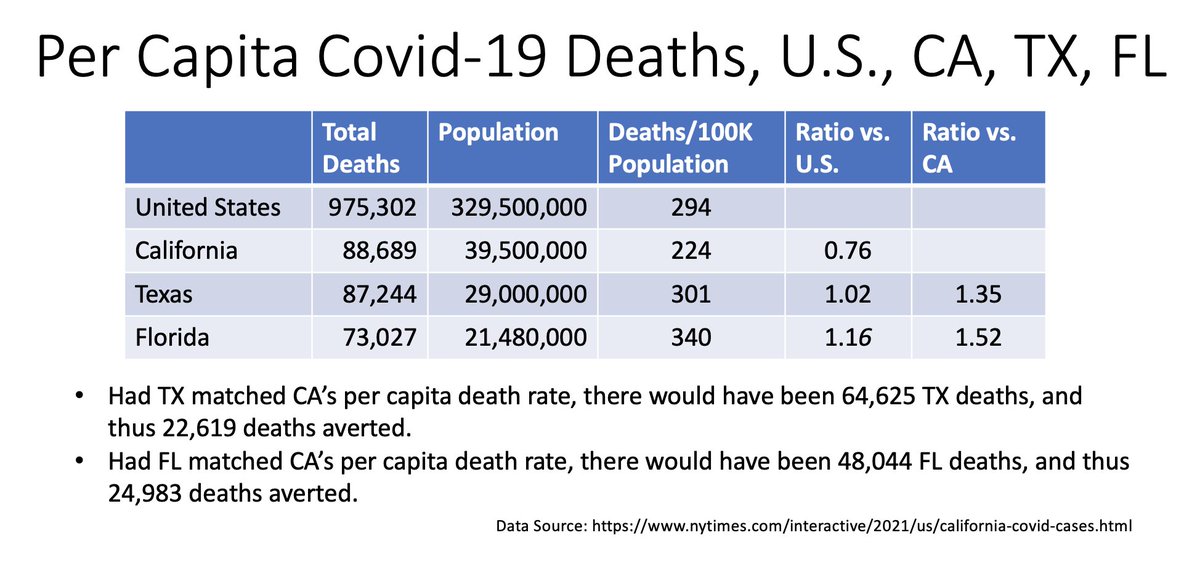 Had FL matched CA's death rate, 24,983 Floridians who died would be alive today.