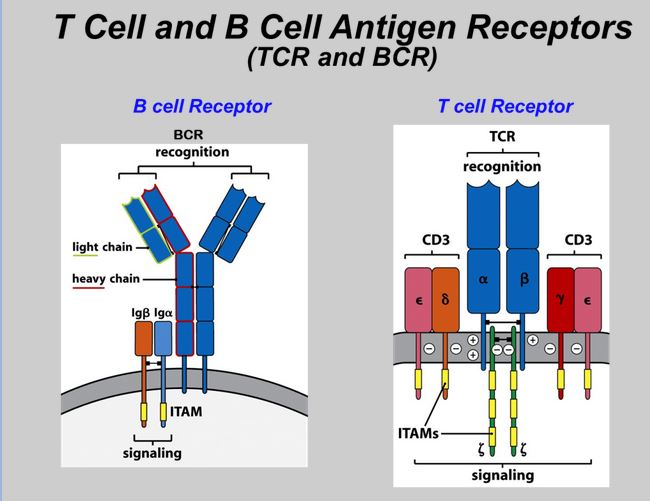 TCR (pour les Ly T), BCR (pour les Ly B), il s'agit de récepteurs exprimés à la surface des lymphocytes ; dotés d'une variabilité+++, ce qui assure une capacité de reconnaissance la plus diverse possible.