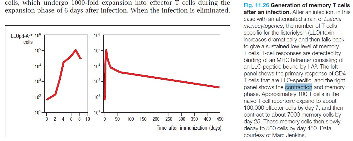 En règle générale, le pool de cellules mémoires qui persiste à la fin de la phase de contraction, est ~5% du pool de cellules effectrices induites lors de la phase d'expansion clonale (puis <1% en quelques mois).