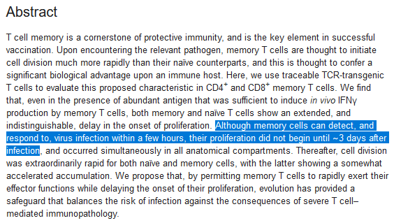 Il faut d'abord que les cellules mémoires le détecte, puis qu'elles s'activent, puis qu'elles prolifèrent, puis se différencient à nouveau, migrent... journals.plos.org/plospathogens/…