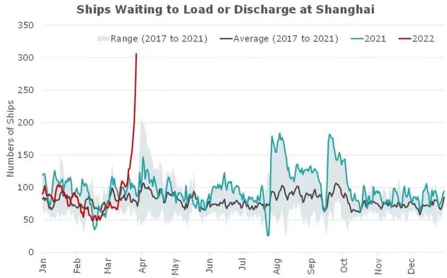Bei schon jetzt angespannten Lieferketten ist diese Situation ein worst case Szenario, insbesondere für das extrem Export-Import-abhängige🇩🇪. Es ist natürlich noch ne gewagte Hypothese, dass #China bewusst #Lockdown in Shanghai durchzieht, um so "subtil" support für🇷🇺zu leisten.