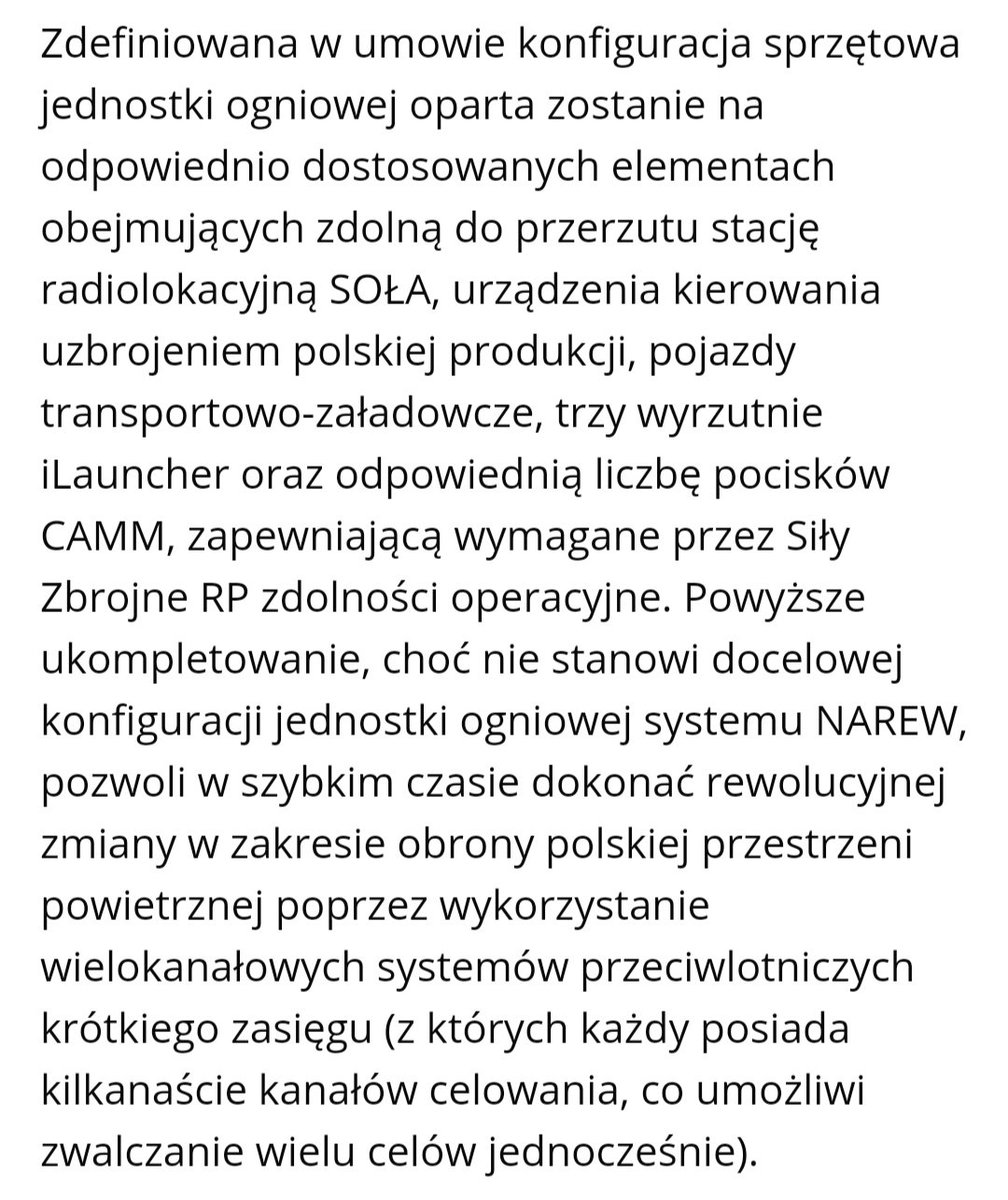 Co równie ważne elementy tych systemów to albo pociski CAMM już wybrane dla docelowej Narwii albo radary Solą jus wdrożone w naszych SZ. Nie ma tutaj pola na wprowadzanie czegoś tylnymi drzwiami. 3/