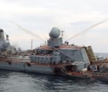 Są i pierwsze faktyczne zdjęcia krążownika Moskwa wykonane po jego uszkodzeniu i pożarze.