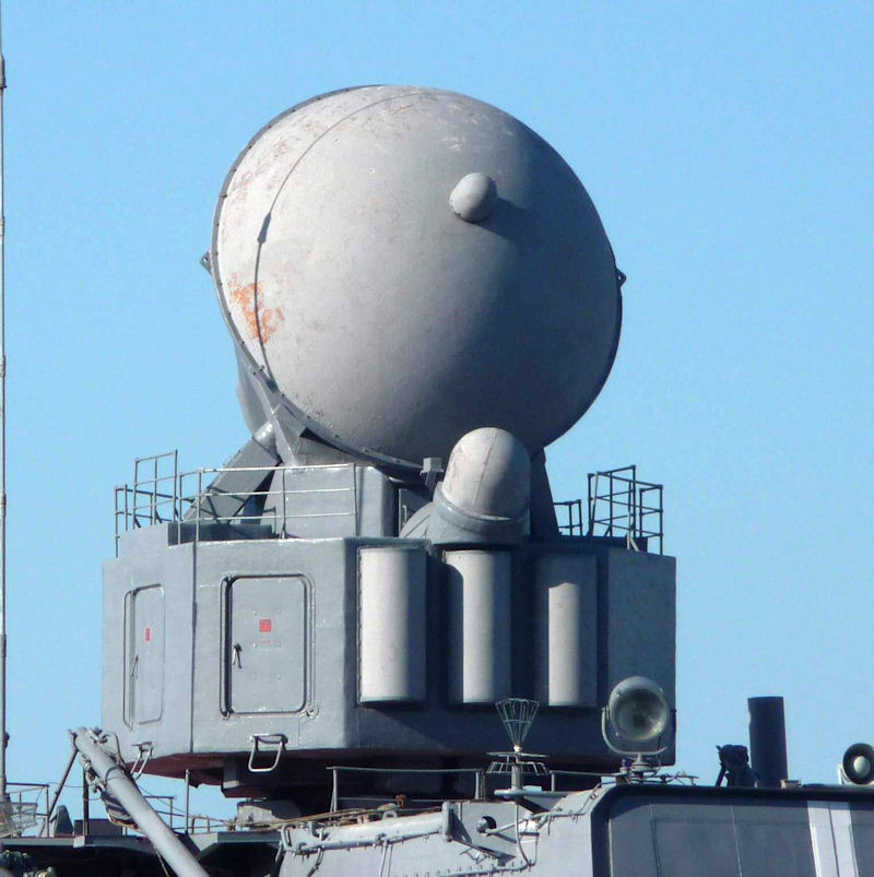 Radar 3R41 służący do kierowania ogniem systemu przeciwlotniczego S-300F jest w pozycji na "spocznij", nie skierowany w kierunku zagrożenia czy też żadnym innym.