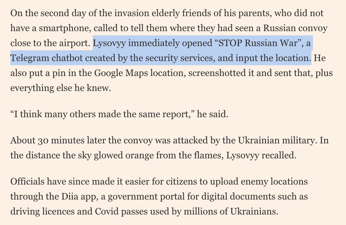 "People trapped behind Russian lines using chatbots, he said, were playing a 21st century version of partisans behind Nazi lines during the second world war."