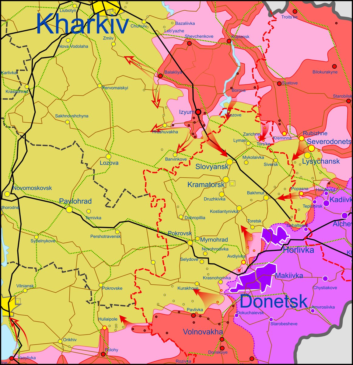 - ๐บ๐ฆ forces have reportedly seized Bairak, part of Kutuzivka in north-east (near Kharkiv) & Lebyazhe, Bazalievka in east; ๐บ๐ฆ forces also reportedly counter-attacked near Kreminna.