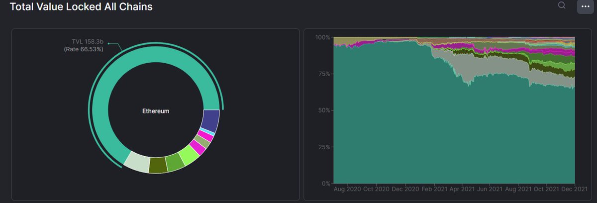 2. The L1 ecosystem is growing like crazy. In 2021 Ethereum lost around one-third of its smart contract market share. The smart contract space is moving to one composed of many blockchains.