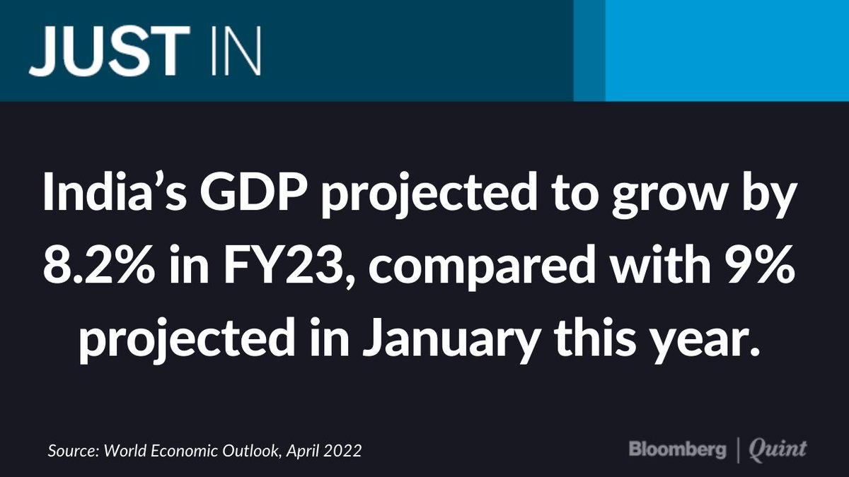 IMF projects India's #GDP to grow at 8.2% in FY23, 0.8 percentage points lower than its projection in January, according to the World Economic Outlook for April 2022. bloombergquint.com/business/imf-c…
