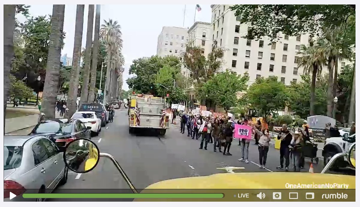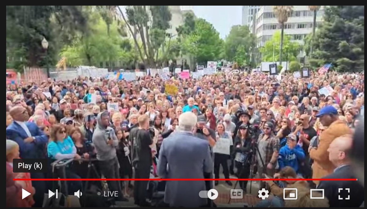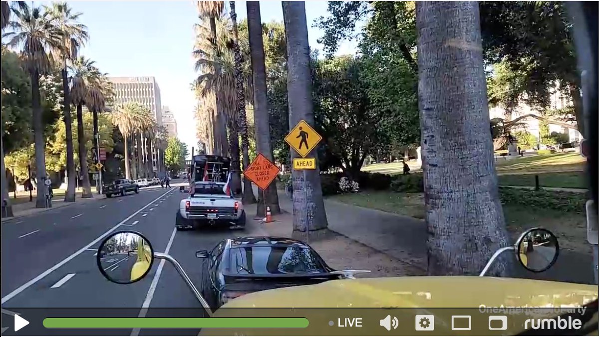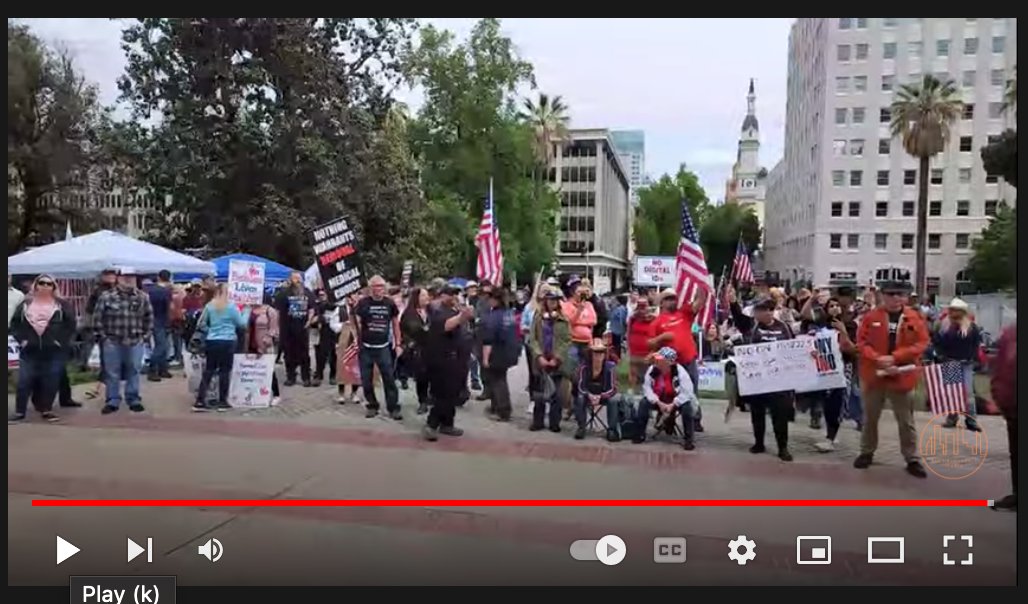 The convoy rally is over, wrapped up by people yelling "freedom". It's 2:30pm PT. Unclear when the convoy plans to depart. The next thing on my schedule of "sh*t that might go badly today" is the 4pm health committee hearing for AB 2223 & the AB 2223 press conf after it. 25 of n