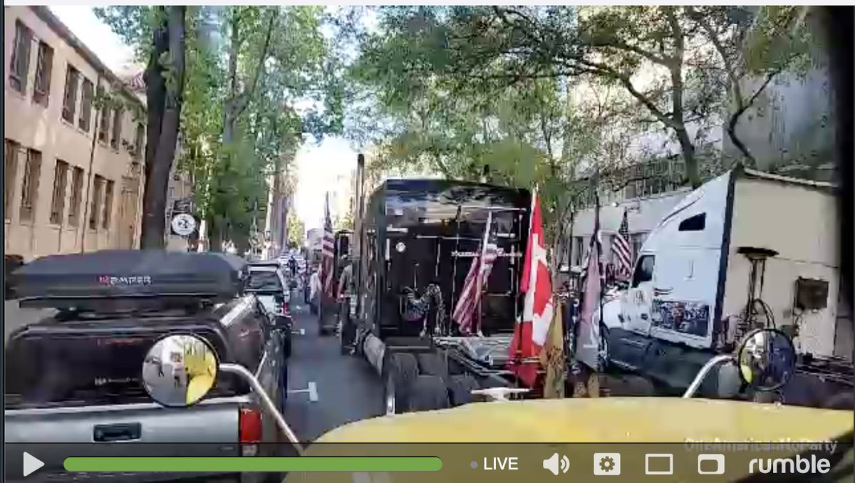 The streamer I'm following is the one who bought the train horns yesterday. He purchased 5, and said he hooked up 4 of them- I believe one on his truck and 3 on others. This is in response to the convoy being told not to blare their horns yesterday. 9 of n