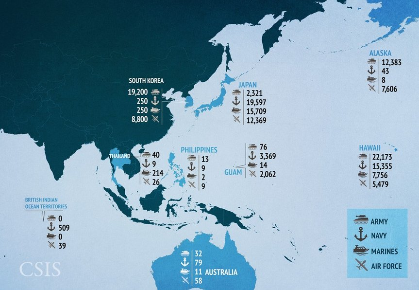 به عبارت دیگر، برای اینکه آمریکا بتواند اینها (در تصویر) را حفظ کند آسیای شرقی نیز باید تفکیک شده باشد.