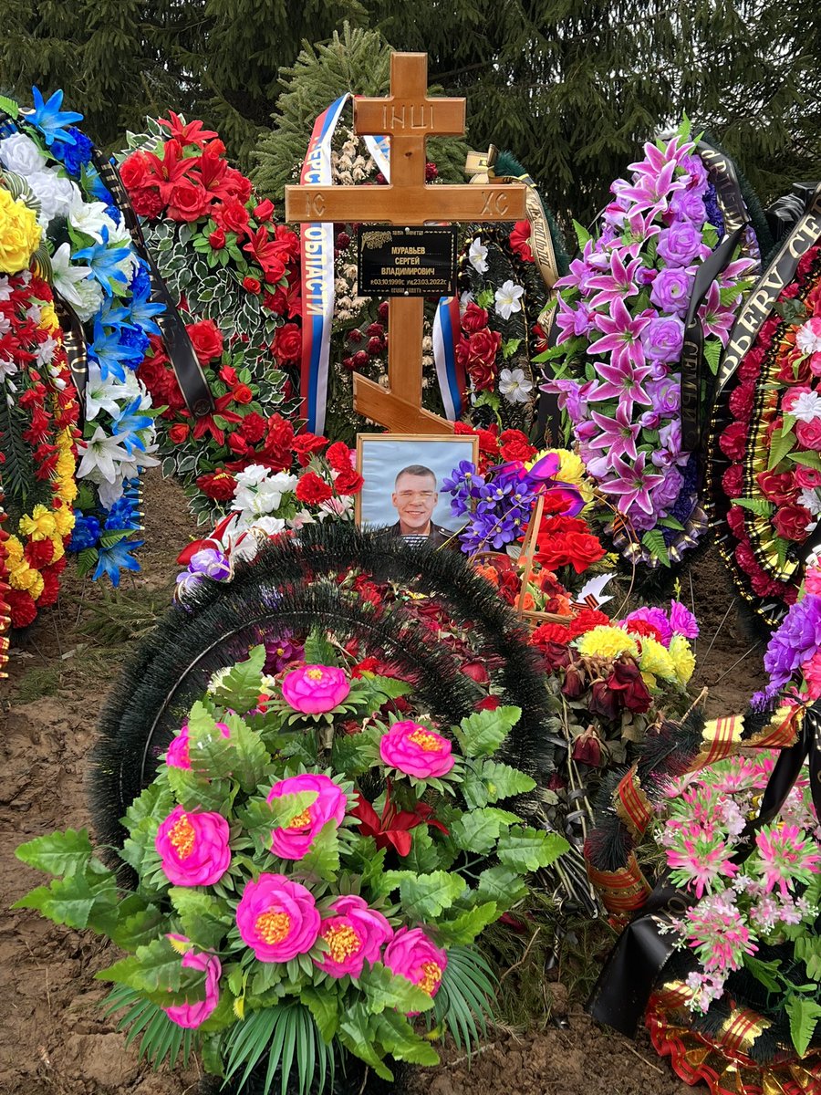 Sergey Muraviev’s grave is covered in floral tributes from regional officials and local agriculture collectives. He is buried alongside his grandfather who was also asked, during his time, to sacrifice himself to the fight against fascism.