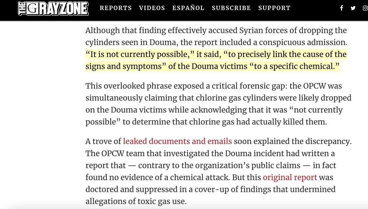A key reason that we still don't know how the Douma victims died is because, as OPCW leaks show, a senior official blocked an effort to consult a forensic pathologist, who could have helped determine the cause/time of death. This was rejected & censored. thegrayzone.com/2021/12/06/cor…