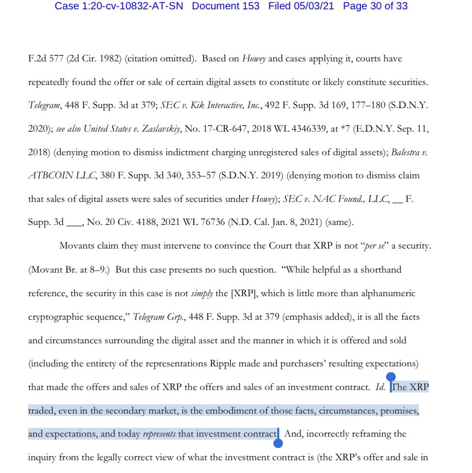 “The XRP traded, even in the secondary market, is the embodiment of those facts, circumstances, promises, and expectations, and today represents that investment contract.”👇