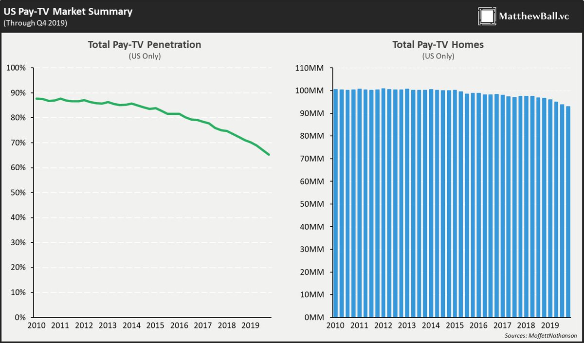 Chapter I: TV goes from ~complete penetration of the country to just above 50% in a decade thanks to Netflix.