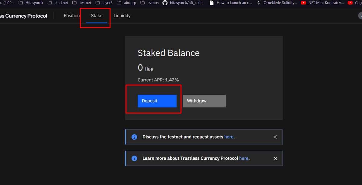 Daha sonra Stake kısmına gelip şu şekil de deposit islemi gerçekleştireceğiz.
