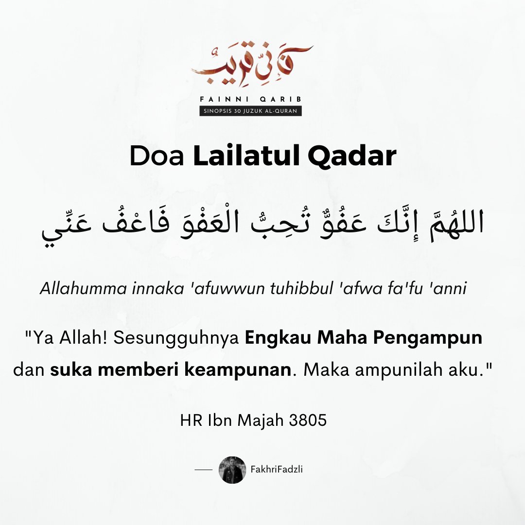 Doa ini ialah wasiat Nabi Muhammad SAW kepada Aishah r.a. andai beliau bertemu dengan Lailatul Qadar. HR Ibn Majah 3805.