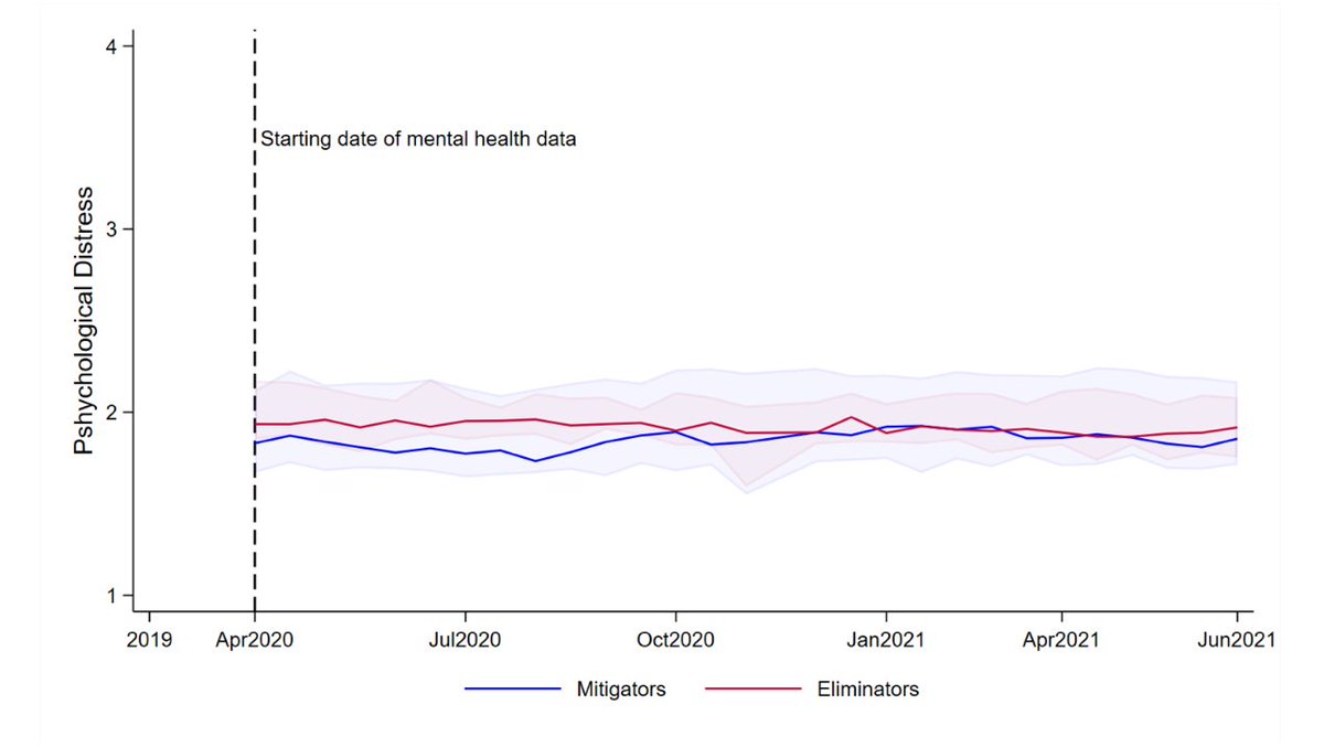 Finding 4d: Eliminator countries had better trends in mental health than mitigators.