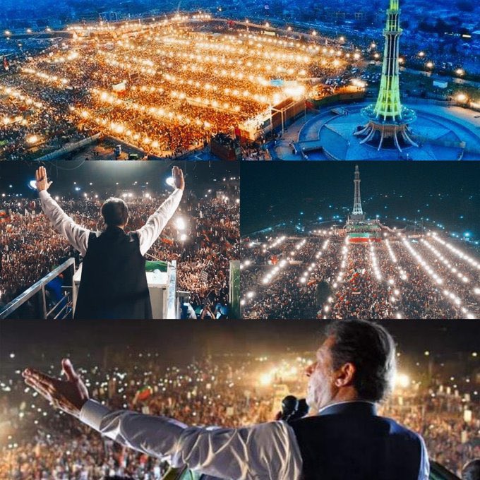 🇵🇰 #ImranKhan, sine-i millet yürüyüşünde üçüncü mitingini Lahor'da yaptı. Burası 11 milyon nüfusuyla #Pakistan'ın 2. büyük şehri ve 110 milyonluk Pencab eyaletinin yönetim merkezi. Yüzbinler "İthal hükümeti tanımıyoruz" diyerek derhal erken seçim istiyor.
