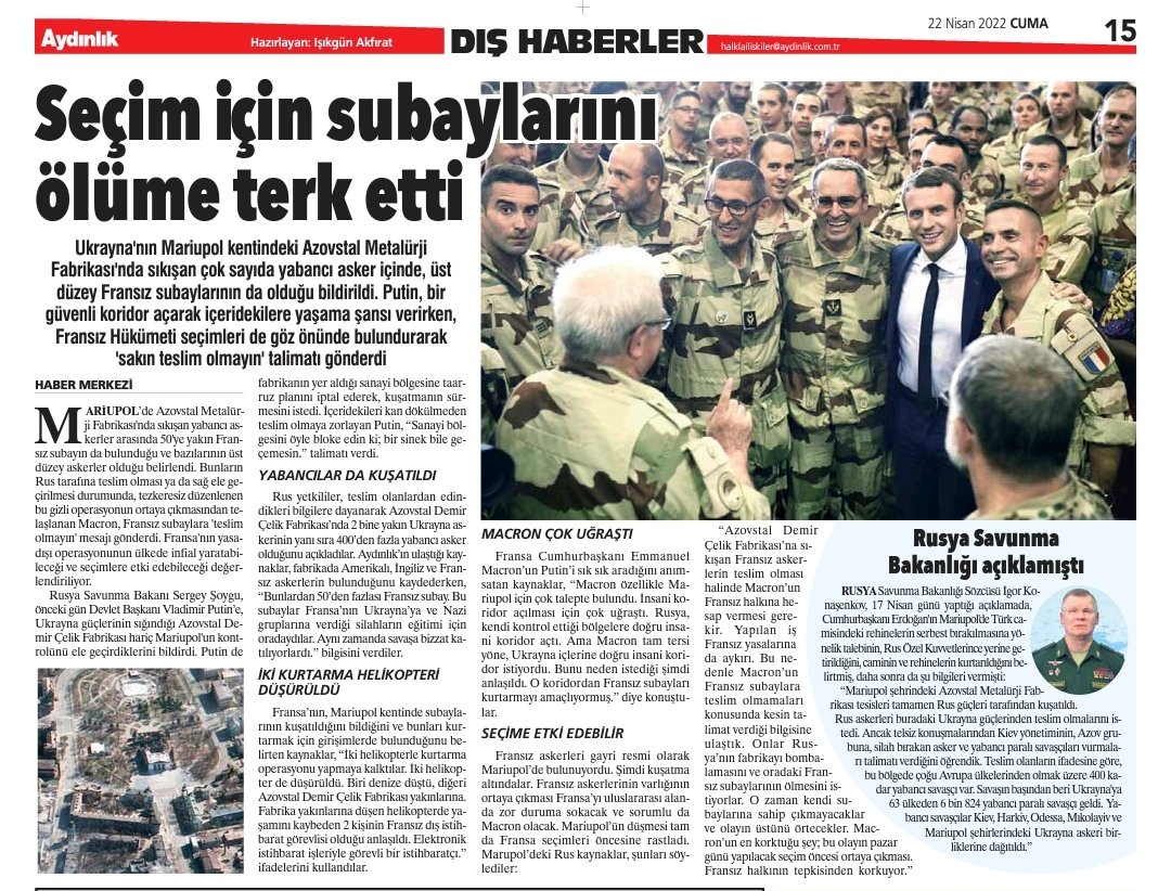 This is scandalous cause their presence there is w/out any official and legal underpinning. And now, instead of finding a way to save French, Macron ordered them "die if necessary" but not ever let this fact out that might cost him dear in the elections. aydinlik.com.tr/haber/macron-s…