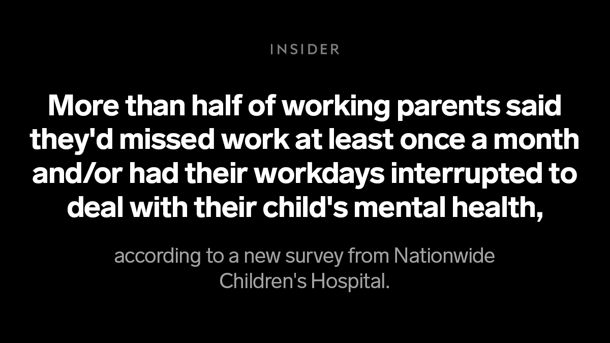 A new survey from @nationwidekids showed that between 30% and 50% of parents also said that they were distracted at work by thoughts about their child's well-being, perhaps owing to the mental-health challenges so many kids are facing.