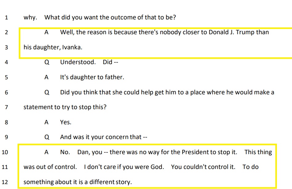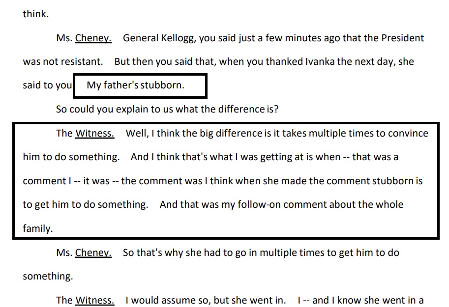 Excerpt included by Jan 6 committee.... of interview with Gen. Keith Kellogg about his ask of Ivanka Trump on Jan 6 ====>