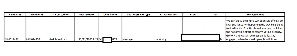 "Committee now has testimony from other White House staff that Mr Meadows & certain congressmen were advised by White House Counsel that efforts to generate false certificates did not comply w/ the law"