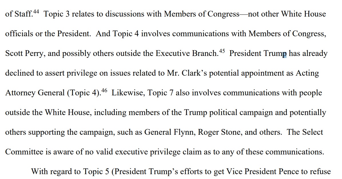 Committee (more): "..even though much of the information we’re seeking couldn’t possibly be covered by privilege and courts have rejected similar claims because the committee’s interest in getting to the truth is so compelling. It’s essential that the American people..."