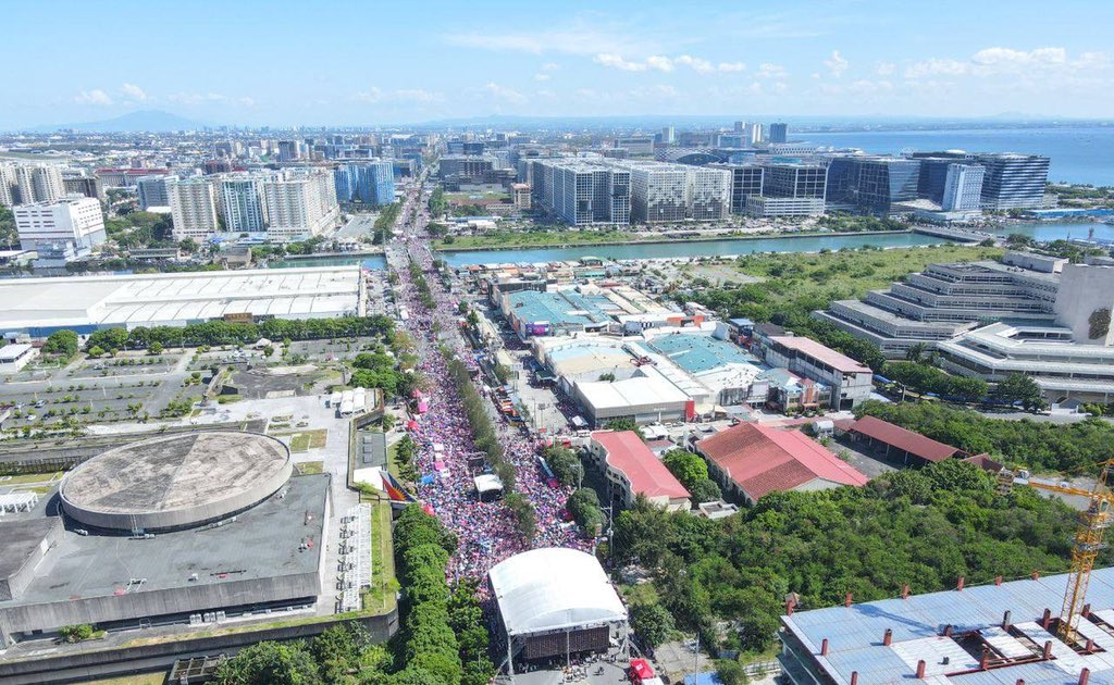 LOOK: Aerial shots of the crowd along Macapagal Ave, Pasay for Robredo’s birthday rally as of 2:30 pm. 📷 Jimmy Dasal/Team Kiko #PHVote
