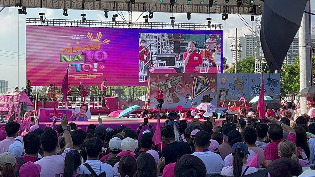 In this Robredo rally, her supporters’ house-to-house efforts are being highlighted in the program. Not surprising, as this is the ace of her recent momentum on the campaign, a good counterattack to the intense disinformation Robredo has been facing these past years. #PHVote