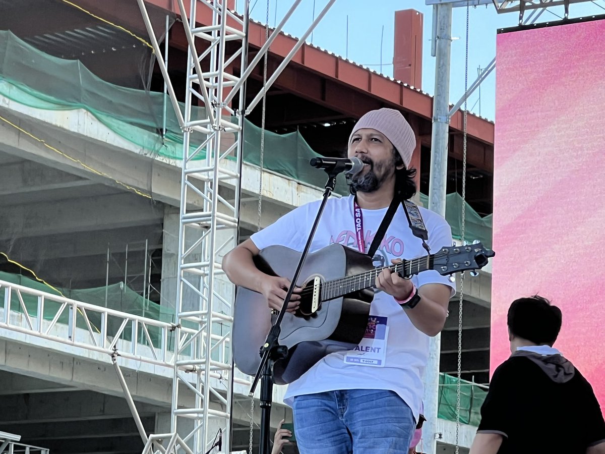 WATCH: Singer-songwriter Ebe Dancel sings “Bawat Daan.” Its lyric “Nag-iisang tiyak, sa isang libong duda” has been used by Robredo supporters to describe the lone female presidential candidate. #PHVote
