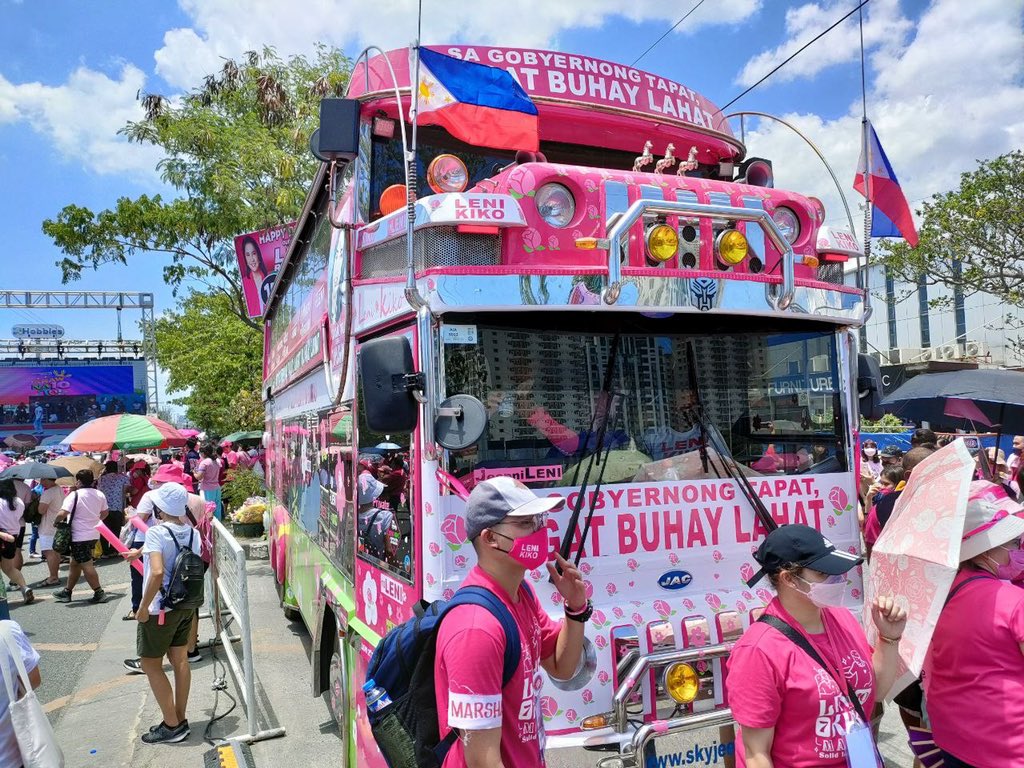 “Kakampinks” in Pasay are turning into a frenzy now as the program flow nears the arrival of Robredo, woman of the hour. Their energy is relentless, with the crowd here jumping to the beat of the opening number. They wave their flags, posters, and other props in the air. #PHVote
