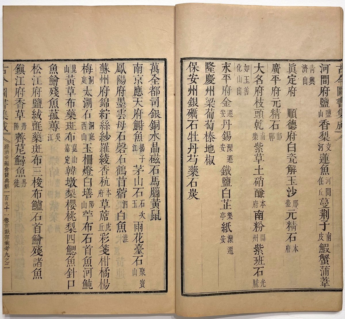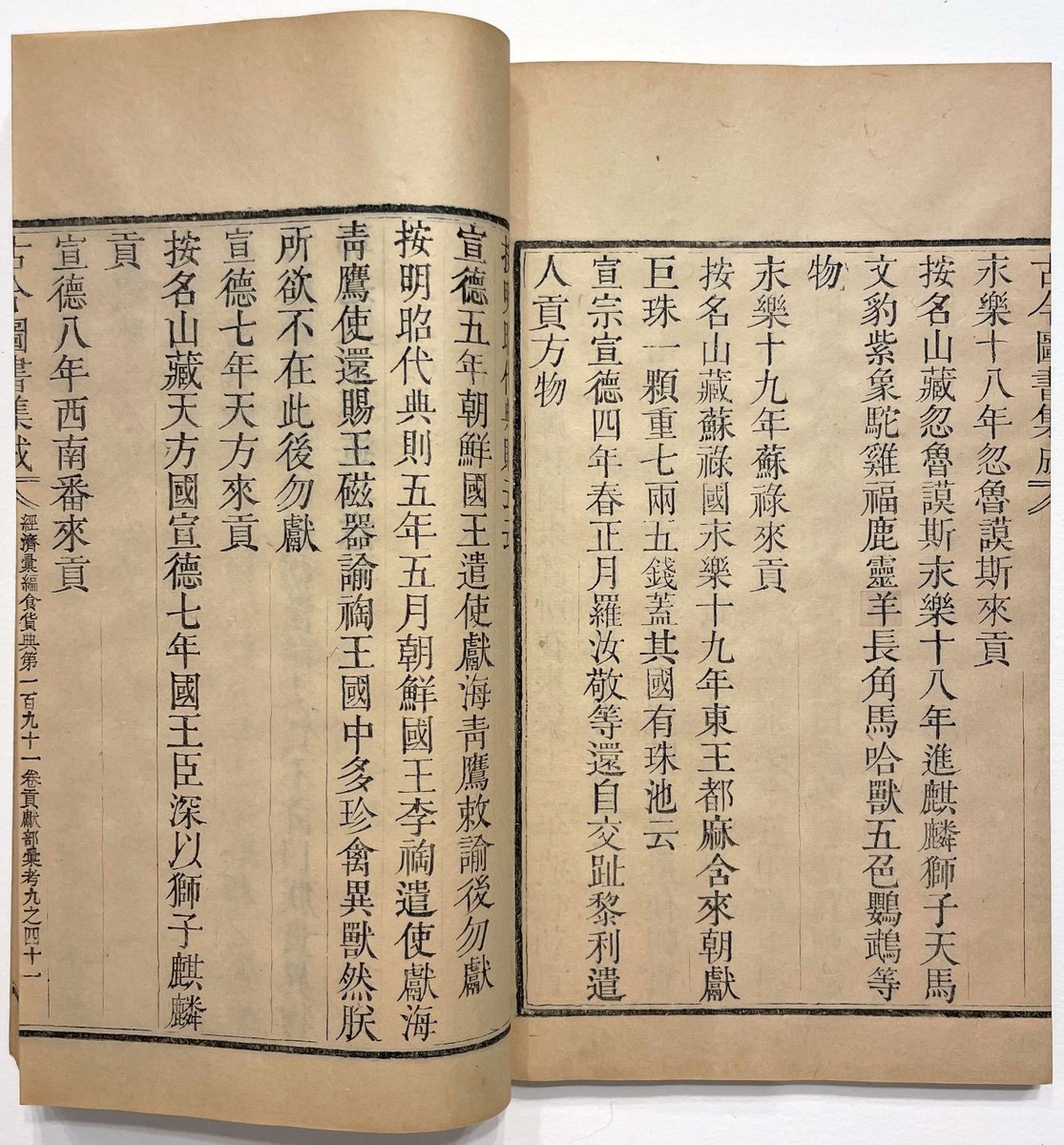 Gujin tushu jicheng. 古今圖書集成 Nei-fu, Beijing, 1726- 1728. First edition, printed in copper movable type. The great Imperial Encyclopaedia 'Gujin tushu jicheng' - 852 000 pages in 10 000 juan 卷 - was compiled on the order of the Kangxi Emperor. 1/