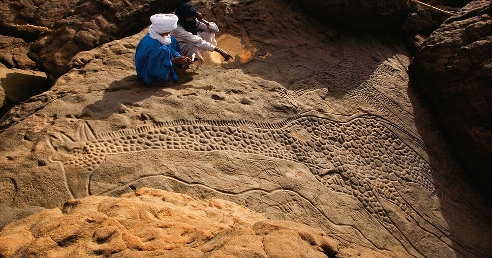 The area in north central Niger where the petroglyphs are found is in the absolute heart of the Sahara, and is known as the Tenere Desert. 'Tenere', literally translated as ‘where there is nothing’, is a barren desert landscape stretching for thousands of miles. 5/