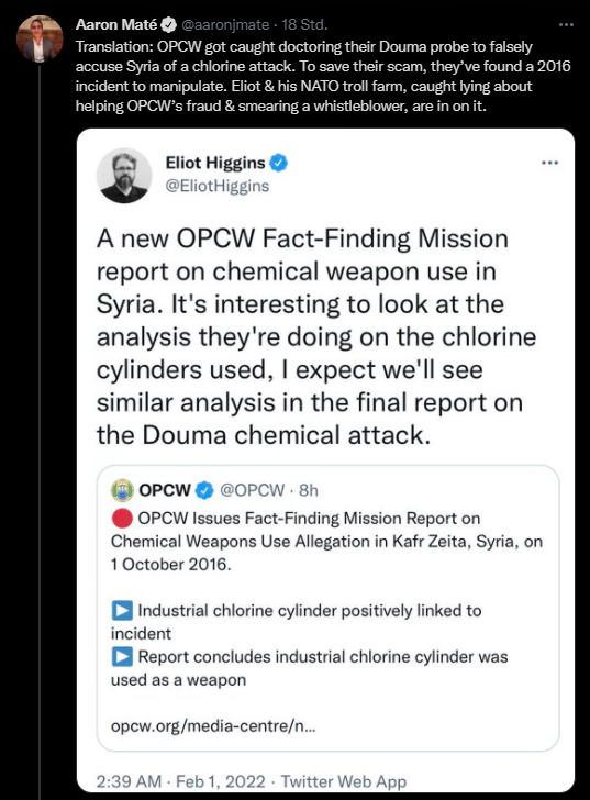 First, it provoked the gloating of various actors who apparently believe that this report removes any doubts about the Douma report and ergo that the whistleblowers are exactly the idiots they were made out to be by united press power. Is that so?